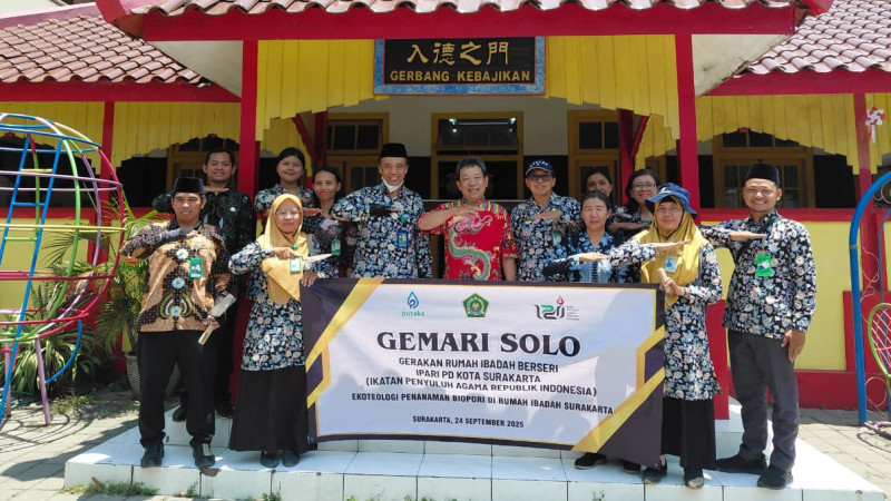 Solo (Pusbimdik) — Kementerian Agama Kota Surakarta bersama para penyuluh lintas agama meluncurkan Gerakan Rumah Ibadah Berseri (GEMARI) Solo pada Selasa (24/9), bertempat di halaman Masjid Agung Surakarta. Kegiatan ini ditandai dengan penanaman biopori di enam rumah ibadah lintas agama di Kota Solo.